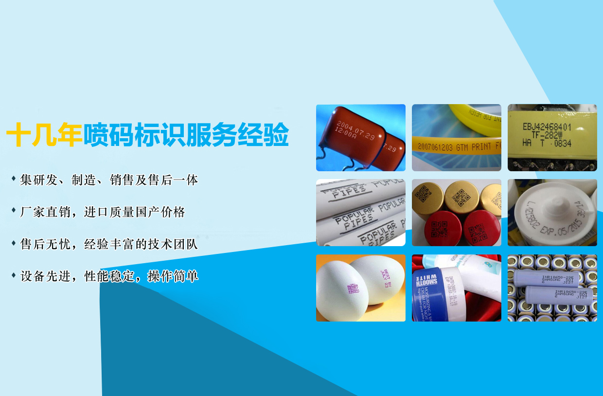 歡迎光臨我們的網站!我司是專業噴碼標識服務商,產品有小字符噴碼機、二維碼條碼噴碼機、手持噴碼機、激光噴碼機等并提供噴碼機加工,免費打樣和試機